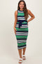 Magenta Brushstroke Print Tiered Maternity Maxi Dress
