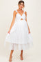 Magenta Damask Front Tie Smocked Waist Midi Dress