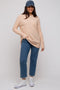 A solid hued plus maternity top featuring long sleeves with embroidered details and a rounded neckline.