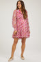 Magenta Floral Chiffon Mock Neck Button Front Dress