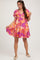 A floral print maternity dress featuring short puff sleeves, side pockets, a ruffle hem and a v-neckline.