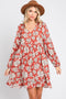 Magenta Floral Puff Sleeve Tiered Maternity Dress