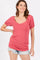 Magenta Short Puff Sleeve V-Neck Top