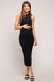 A solid maternity knit midi dress with a scoop neckline and side cutouts.