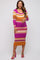 Magenta Striped Long Sleeve Maternity Midi Dress