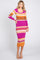 Magenta Striped Long Sleeve Midi Dress