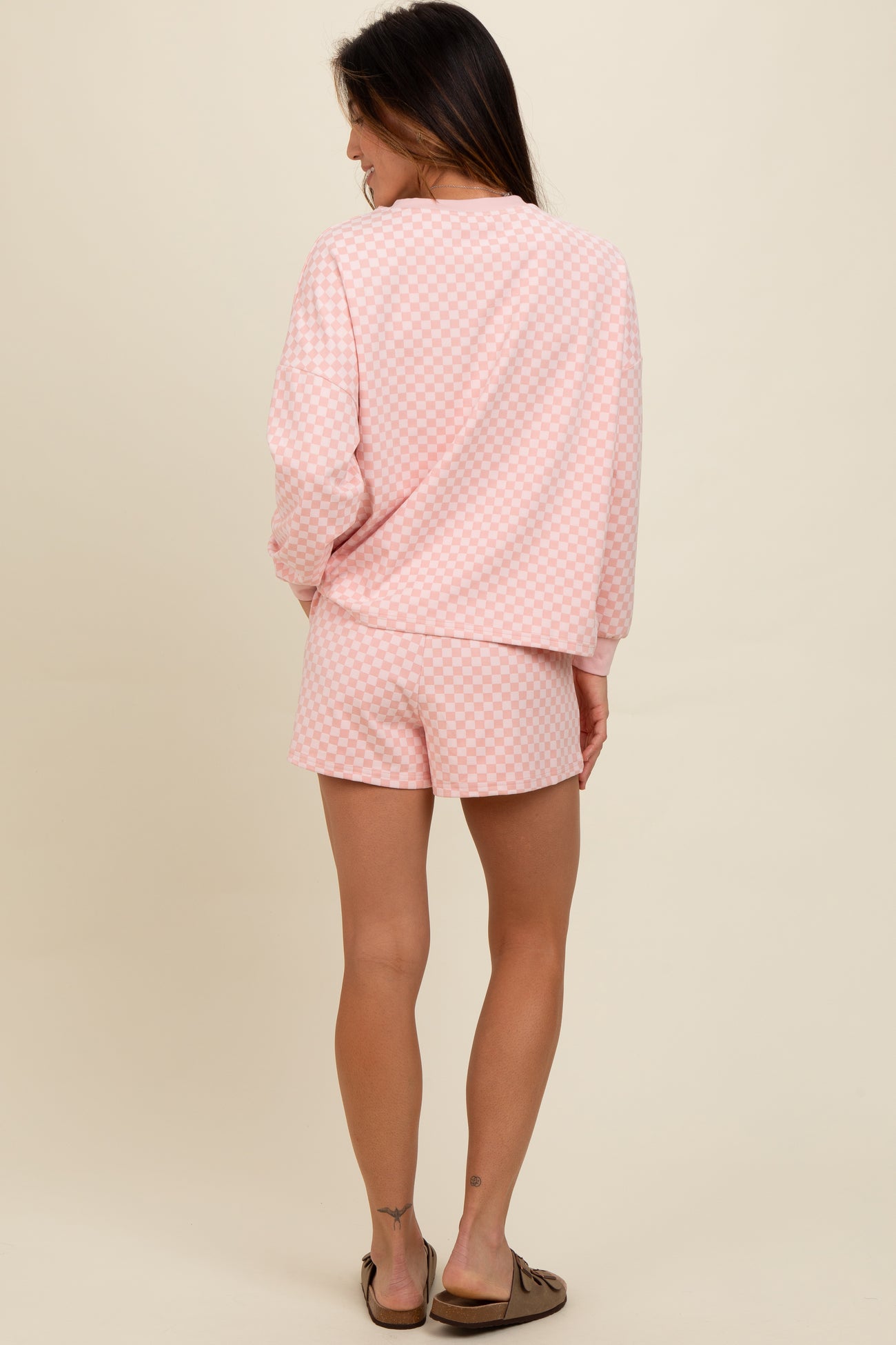 Mauve Checkered Plaid Pullover Shorts Set