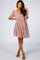 Details A chiffon swiss dot dress featuring a rounded neckline with an adjustable tie, pleated tiers and double lined. Also features short sleeves with an elastic band at the elbow with ruffle trim. Content + Care