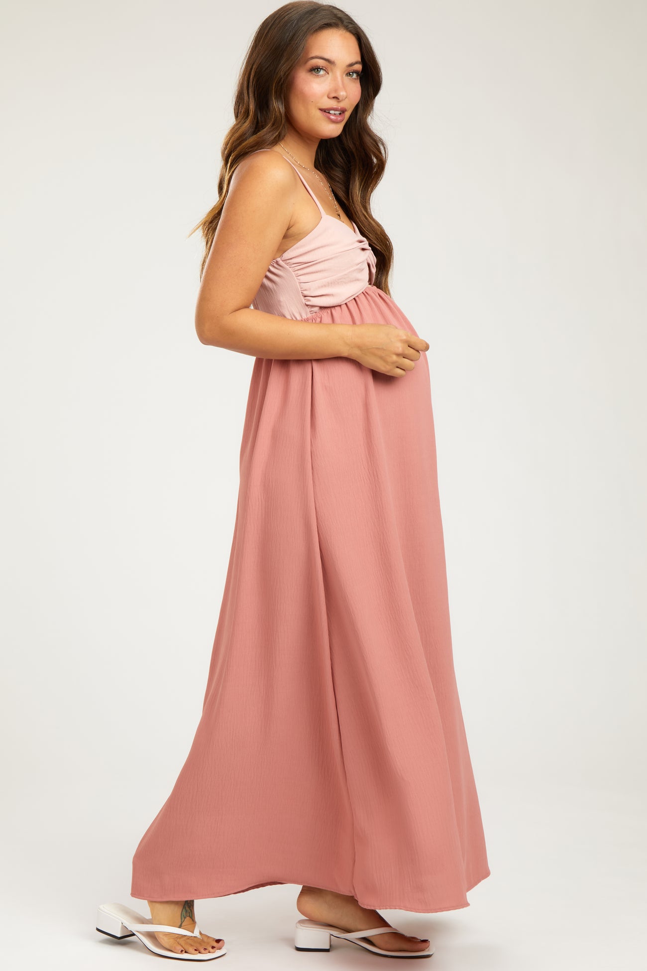 Mauve Color Block Front Cutout Sleeveless Maternity Midi Dress