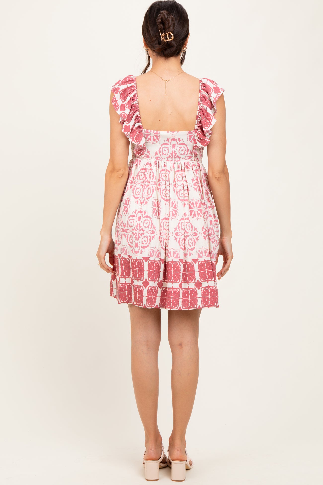 Mauve Damask Ruffle Sleeve Mini Dress
