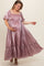 Mauve Puff Sleeve Ruffle Hem Plus Maternity Maxi Dress