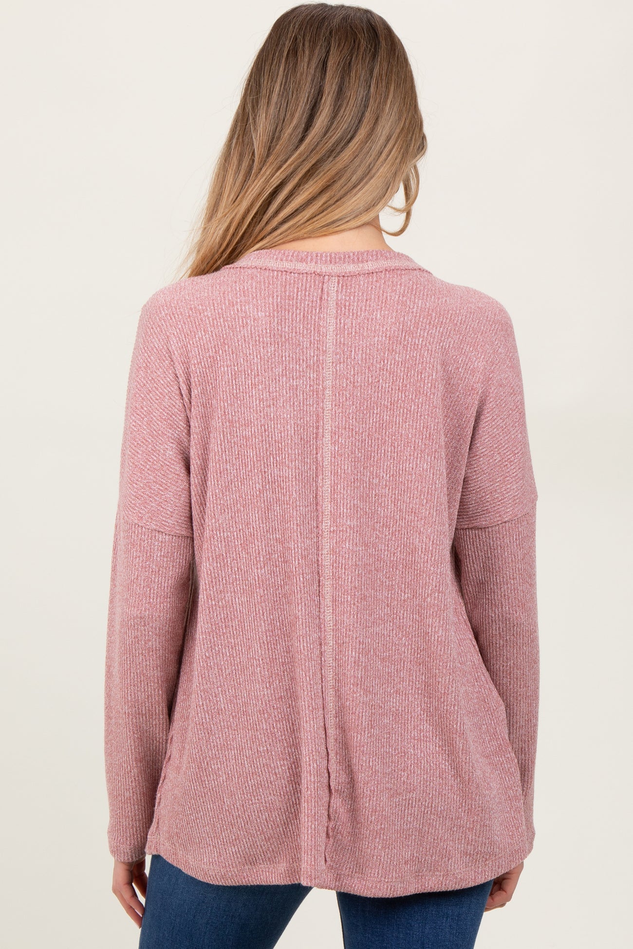 Mauve Ribbed Brushed Knit Oversized Long Sleeve Maternity Top
