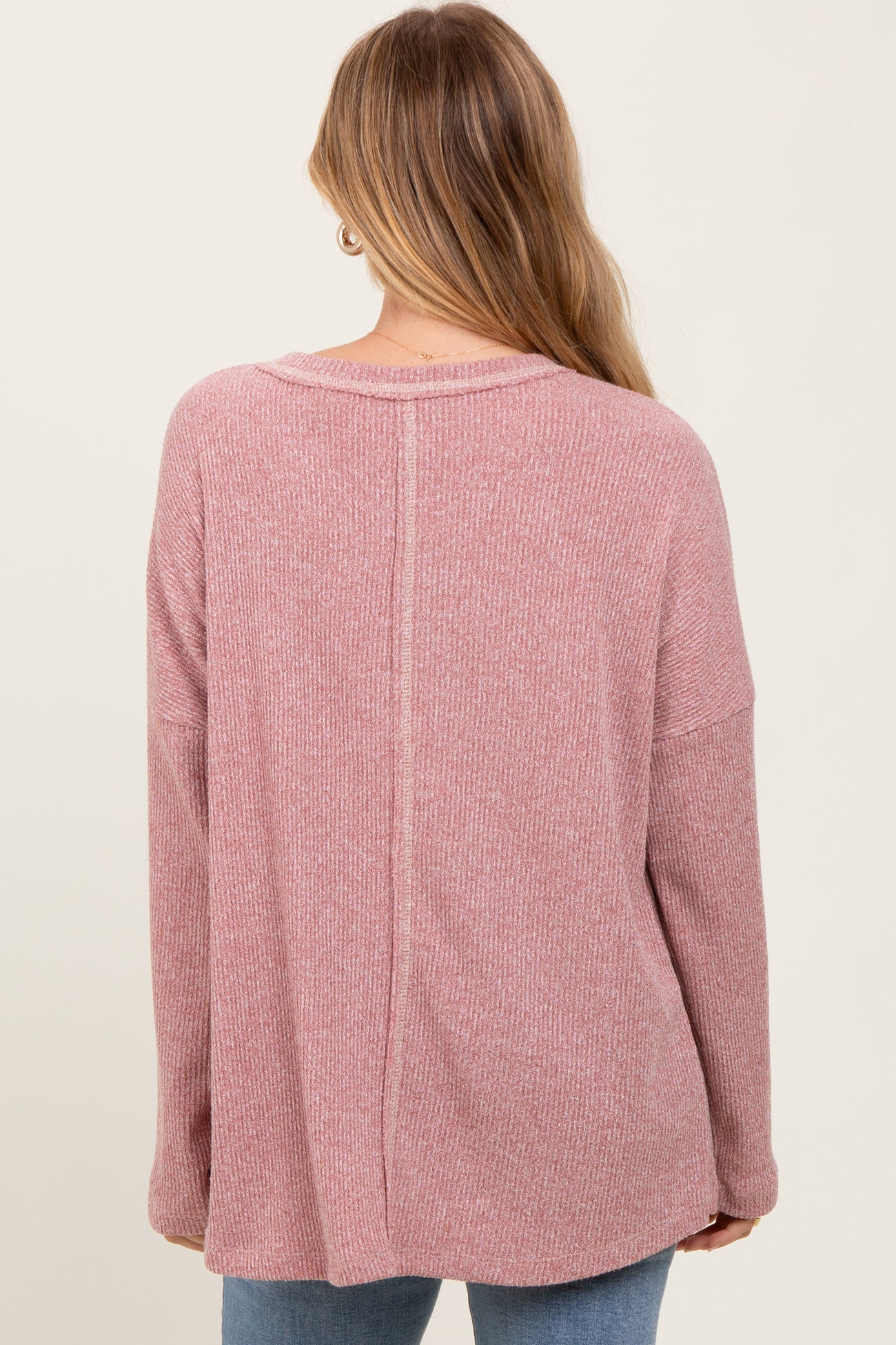 Mauve Ribbed Brushed Knit Oversized Long Sleeve Top