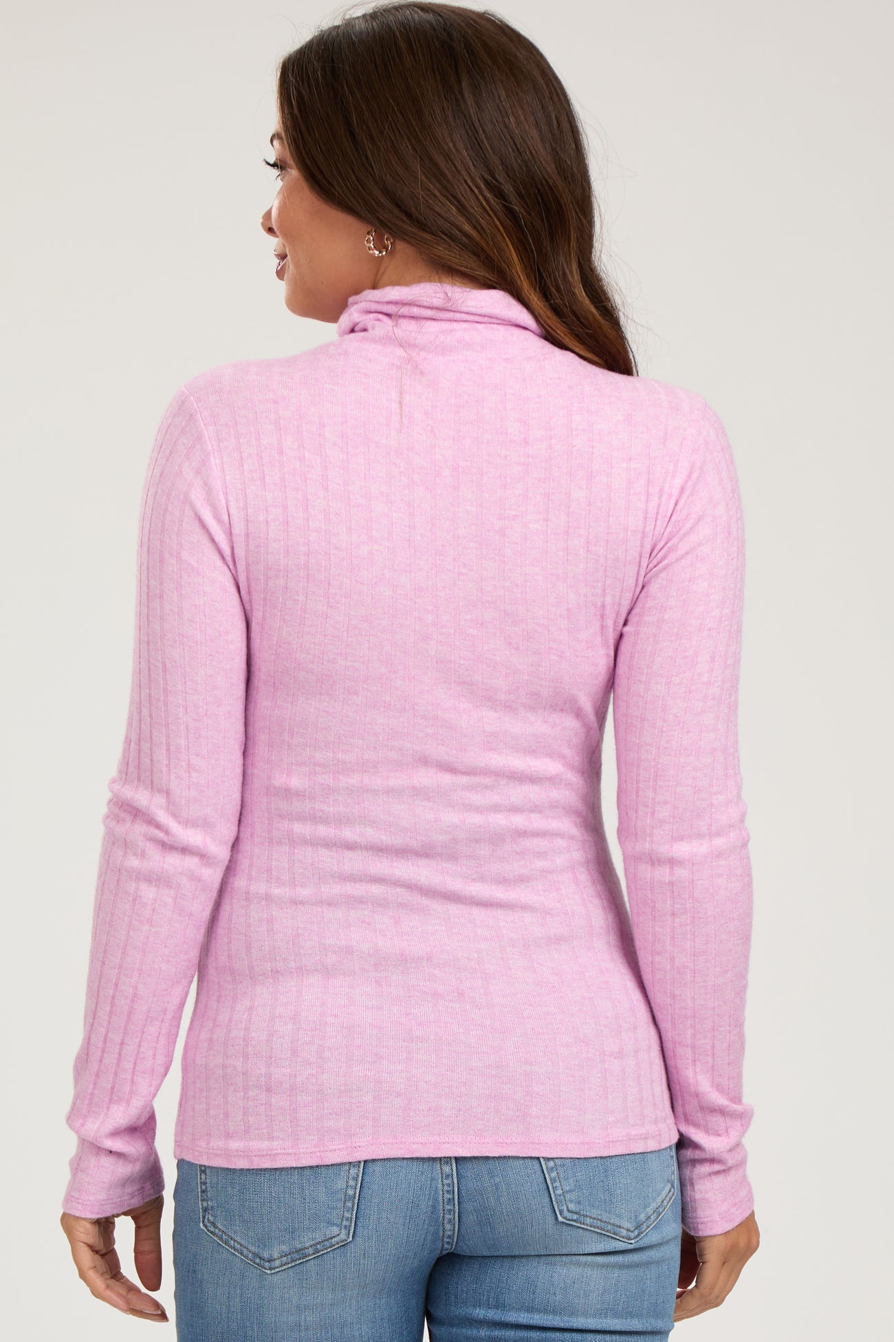 Mauve Ribbed Long Sleeve Maternity Turtle Neck Top