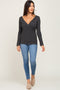 A ribbed maternity nursing top featuring a wrap v-neckline and long sleeves.