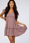 A solid hued maternity mini dress featuring short ruffle sleeves and a v-neckline.