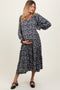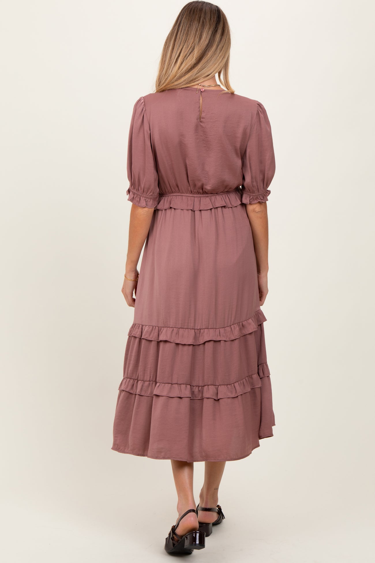 Mauve Satin Ruffle Trim Maternity Midi Dress