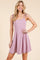 Mauve Shoulder Tie Lace Trim Mini Dress