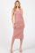 A ribbed sleeveless dress featuring side ruching, a side slit and a rounded neckline.