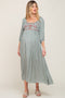 Mint Green Floral Knot Front Smocked Midi Dress