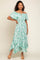 Mint Green Leaf Print Off Shoulder Handkerchief Midi Dress