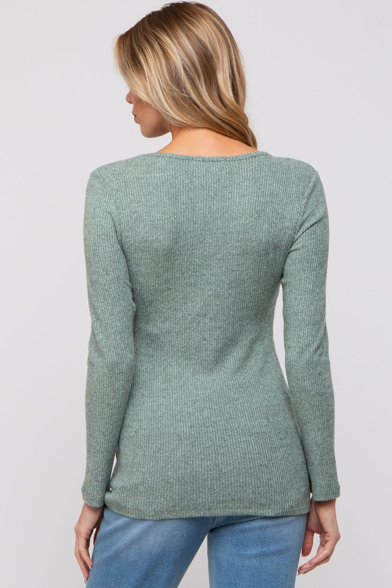 Mint Green Ribbed Crossover Maternity/Nursing Top