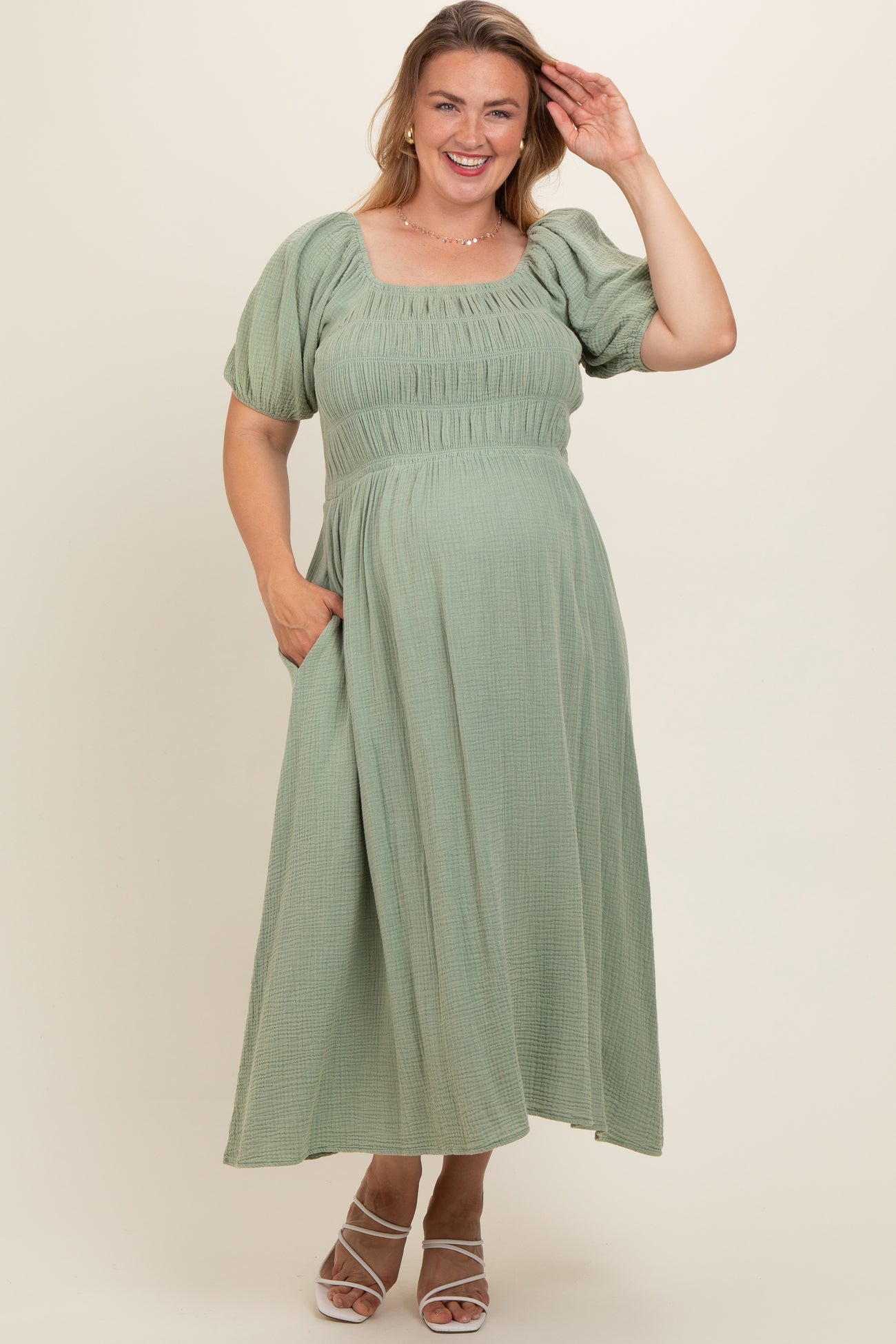 Mint Green Smocked Short Sleeve Maternity Plus Midi Dress