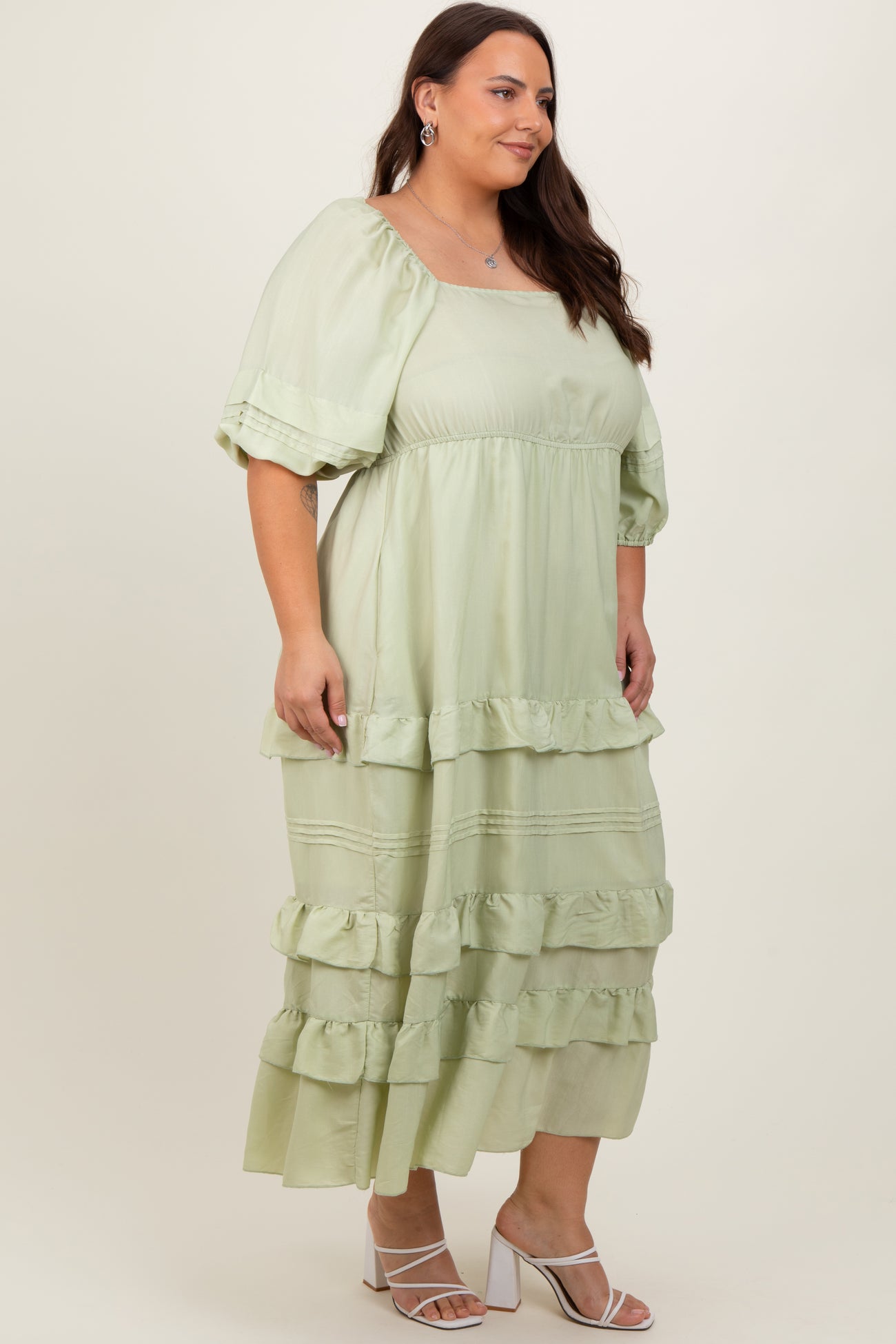 Mint Green Square Neck Ruffle Tiered Plus Maxi Dress