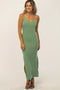 A solid ribbed maternity maxi dress featuring cami straps, side slits and a v-neckline.