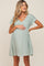 A striped maternity dress featuring short sleeves, side pockets, a v-neckline and a back keyhole cutout with a button closure. Double lined.