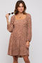 Mocha Floral Tier Long Sleeve Maternity Dress
