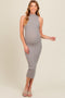 Mocha Front Pocket Line Textured Short Sleeve Maternity Dress