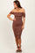 Mocha Mesh Ruched Off Shoulder Fitted Dress