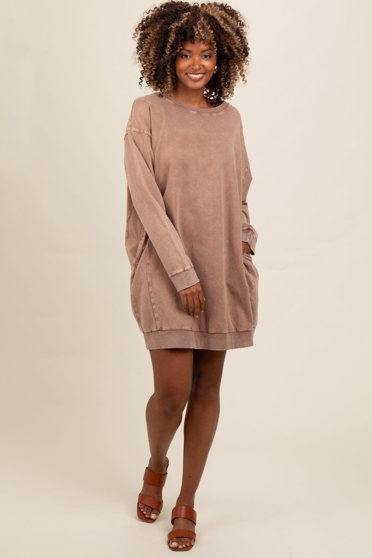 Mocha Mineral Wash Maternity Sweatshirt Dress