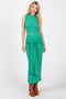 Mocha Ribbed Crop Front Knot Midi Skirt Set