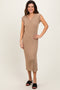 Mocha Ribbed Knit Button Up Sleeveless Maternity Midi Dress