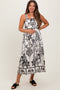 Mocha Ribbed Knit Mock Neck Long Sleeve Midi Dress