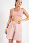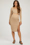 A ribbed sleeveless dress featuring adjustable cami straps and a square neckline.