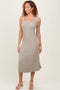 A soft rib knit maternity dress featuring short cap sleeves, a rounded neckline, and a side tie at the waist.