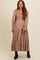 Mocha Smocked Tiered Long Sleeve Maternity Maxi Dress