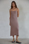 Mocha Square Neck Ribbed Sleeveless Maternity Midi Dress