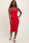 Mocha Striped Ribbed Off Shoulder Maternity Midi Dress
