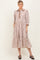 Mocha Striped Scallop Trim 3/4 Sleeve Midi Dress
