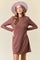 Mocha Textured Knit Ruffle Neck Long Sleeve Mini Dress