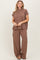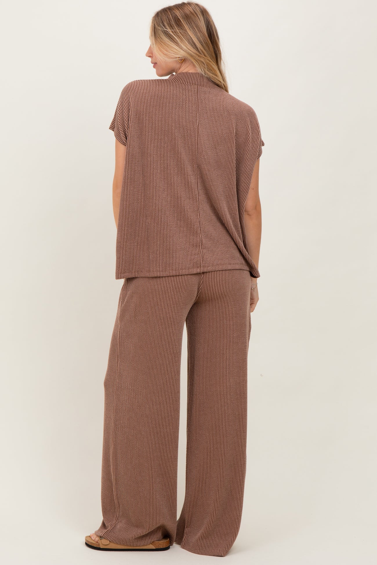 Mocha Textured Rib Mock Neck Short Sleeve Pant Set