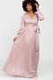Details A solid wrap midi dress with long balloon sleeves, a v-neckline, and an adjustable waist tie. Content + Care