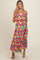 Multi-Color Floral Low Back Tiered Maternity Midi Dress