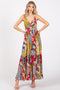 Multi-Color Floral V-Neck Front Knot Tiered Maternity Maxi Dress