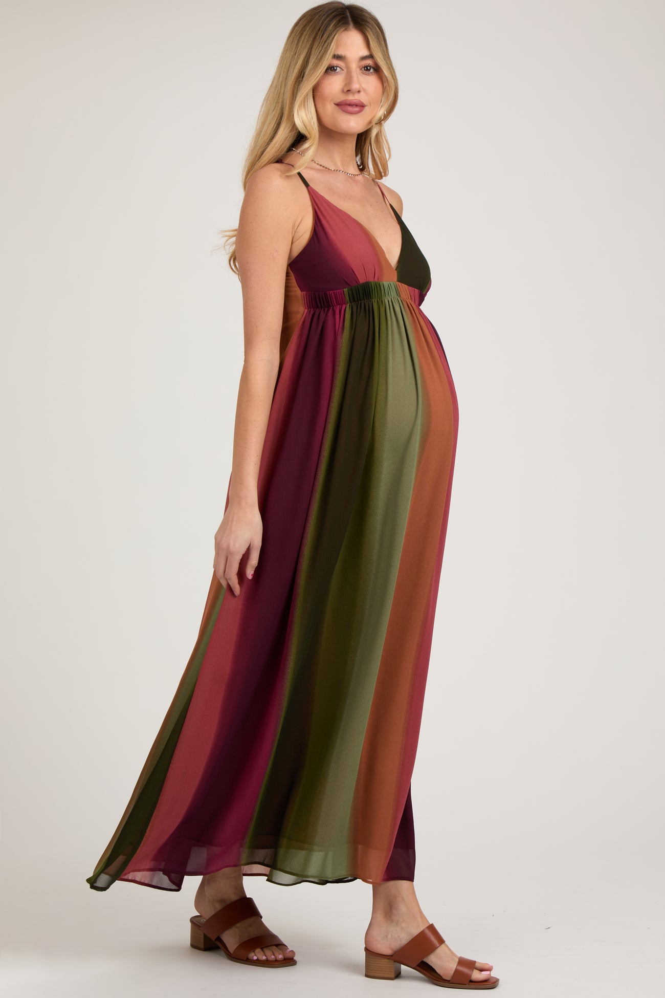 Multi-Color Ombre Chiffon V-Neck Maternity Maxi Dress