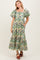 Multicolor Floral Puff Sleeve Bow Tie Detail Midi Dress